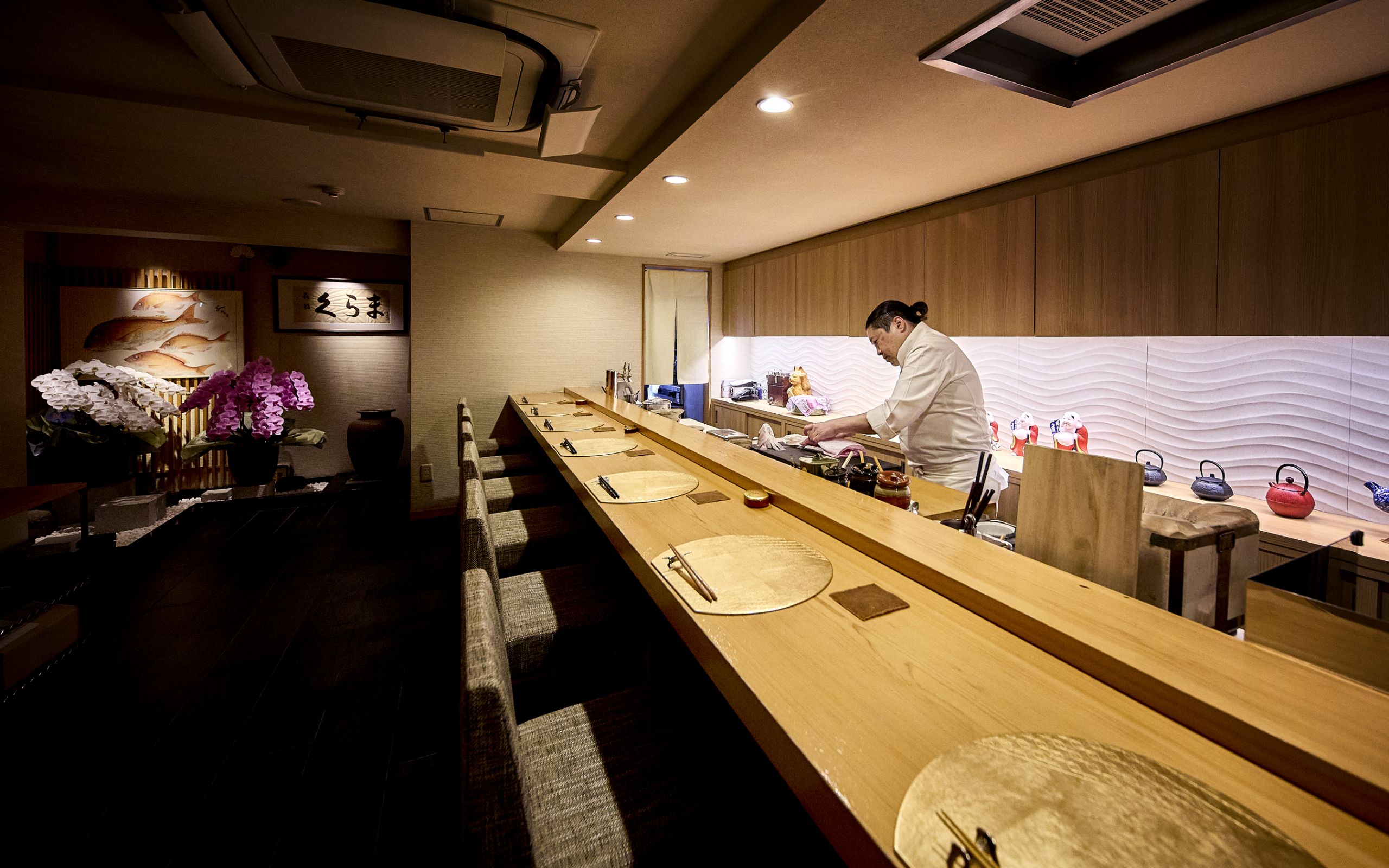 大阪・北新地の名店街の中心で16年以上、8席のみの檜カウンターを構え、静かにお客様をお迎えしてきました。